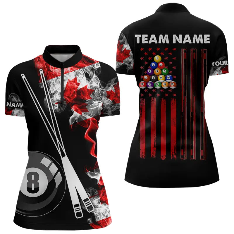 Personalized Canada Flag Smoke 8 Ball Pool Billiard Shirt For Women, Patriotic Billiard Team Jersey TDM3660