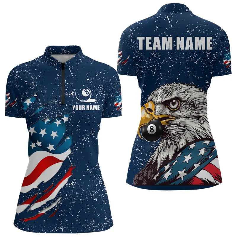 Blue Navy Grunge Eagle American Flag Custom Billiard Shirts For Women, Patriotic Billiard Team Shirts TDM3681