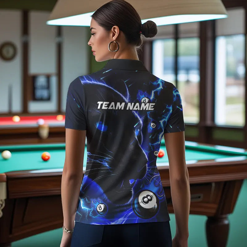 Personalized Blue 8 Ball Pool Panther 3D Billiard Shirts For Women, Team League Billiard Jerseys TDM3738