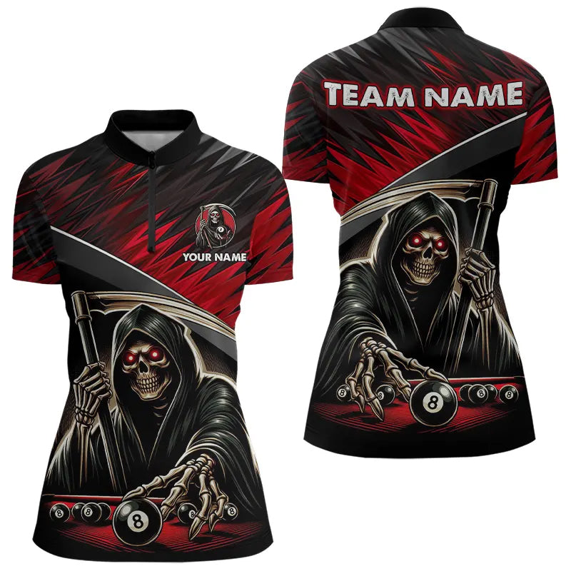 Red Grim Reaper 8 Ball Pool Billiard Shirts For Women Custom Billiard Team Jerseys Polo & 1/4 Zip TDM3760
