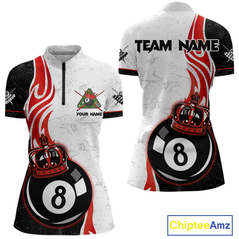 Personalized 8 Ball Pool Crown Billiard Shirt For Women Custom Pool Jersey Billiard Team Shirt |Red TDM4180