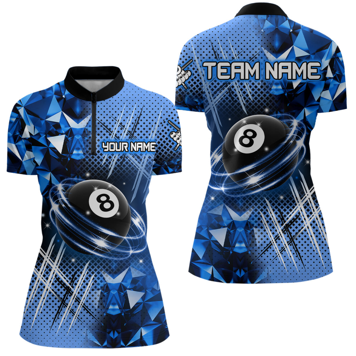 Blue Billiard Shirt 8 Ball Billiard Jersey for Women Billiard Gifts for Women Polo & 1/4 Zip NNT25