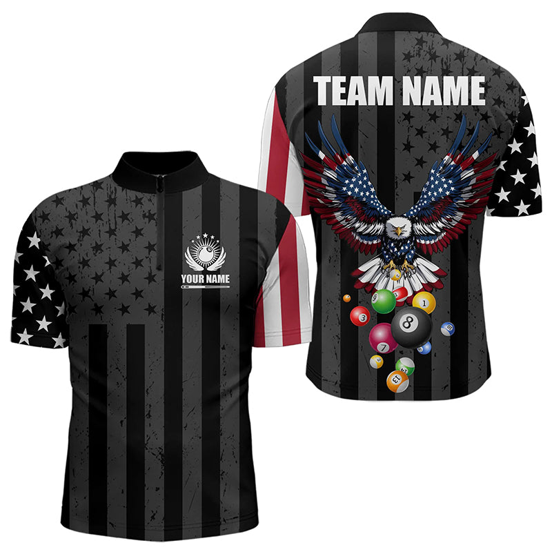 Personalized Eagle American Flag Billiard Balls Pool Shirt For Men, Patriotic Billiard Shirt Jersey TDM3252