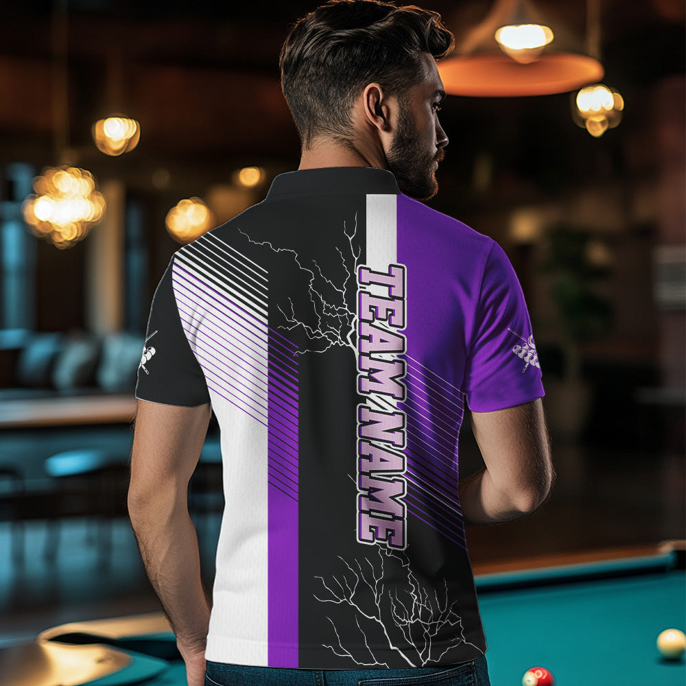 Personalized Black Purple Billiard Polo & 1/4 Zip For Men Custom 8 Ball Pool Billiard Team Jersey TDM3690