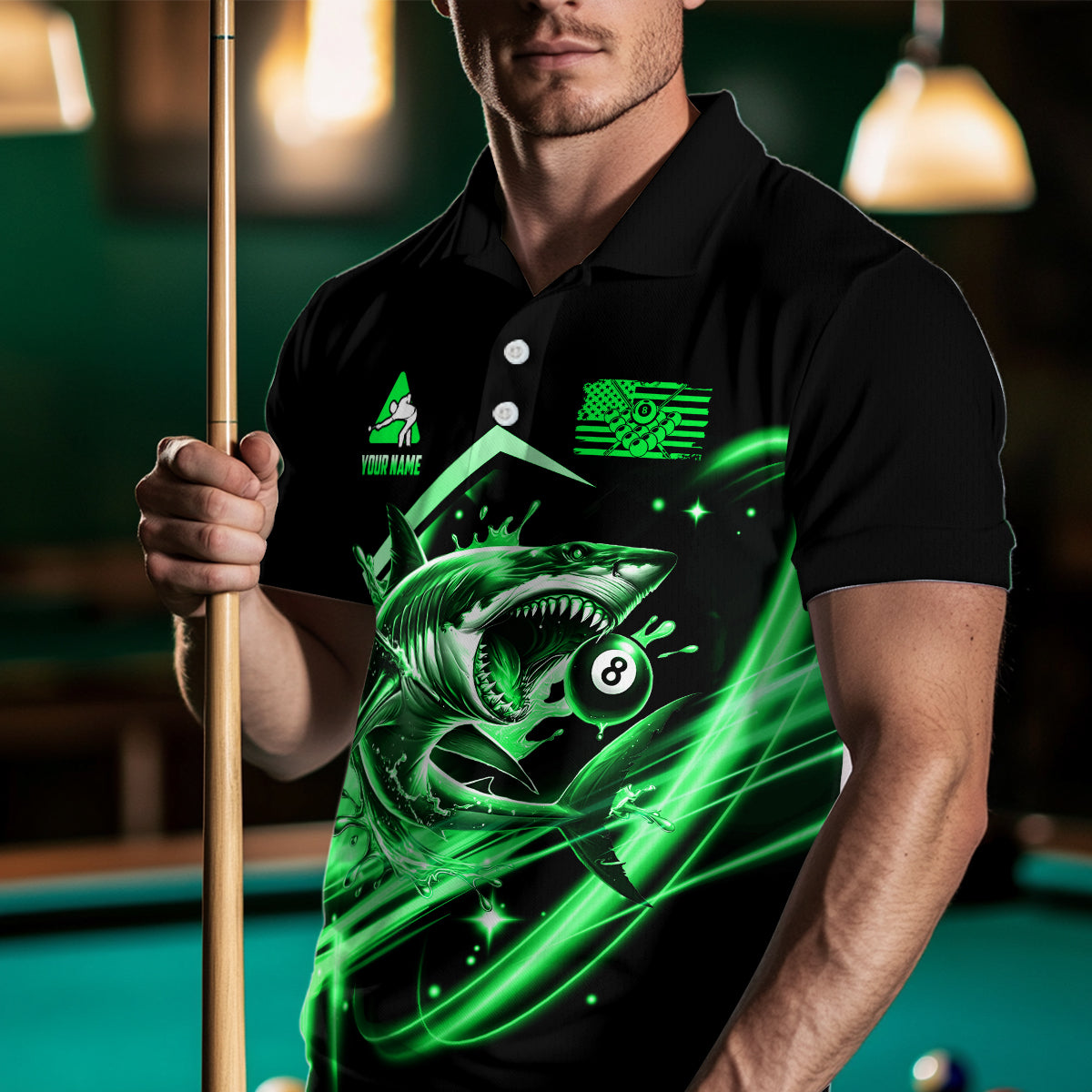 Green 8 Ball Pool Billiard Shark Polo & Quarter Zip For Men Custom Team League Billiard Jersey TDM3732