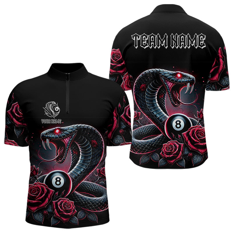 Personalized Rose 8 Ball Pool Cobra Snake Billiard Shirts For Men, Billiard Jerseys Polo & 1/4 Zip TDM3748