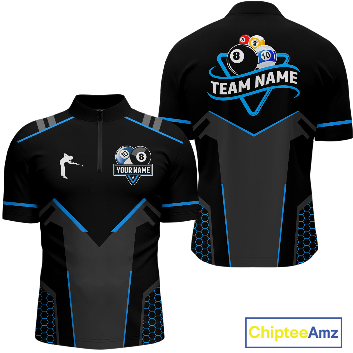 Personalized 8 Ball & 10 Ball Pool Billiard Polo, 1/4 Zip For Men Custom Team Billiard Jersey TDM4050