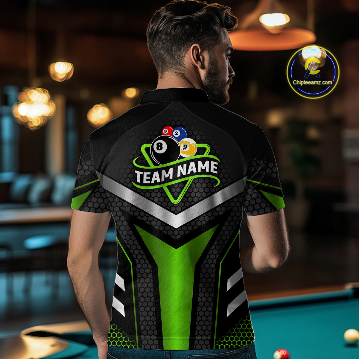Personalized Billiard 8 Ball & 9 Ball Pool Polo, 1/4 Zip For Men Custom Team Billiard Jersey|Green TDM4256