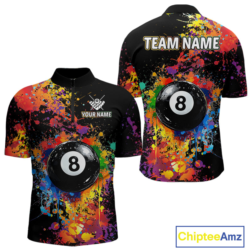 Colorful Billiard Jersey Polo & 1/4 Zip For Men Custom Funny 8 Ball Pool Billiard Team Jersey TDM4575