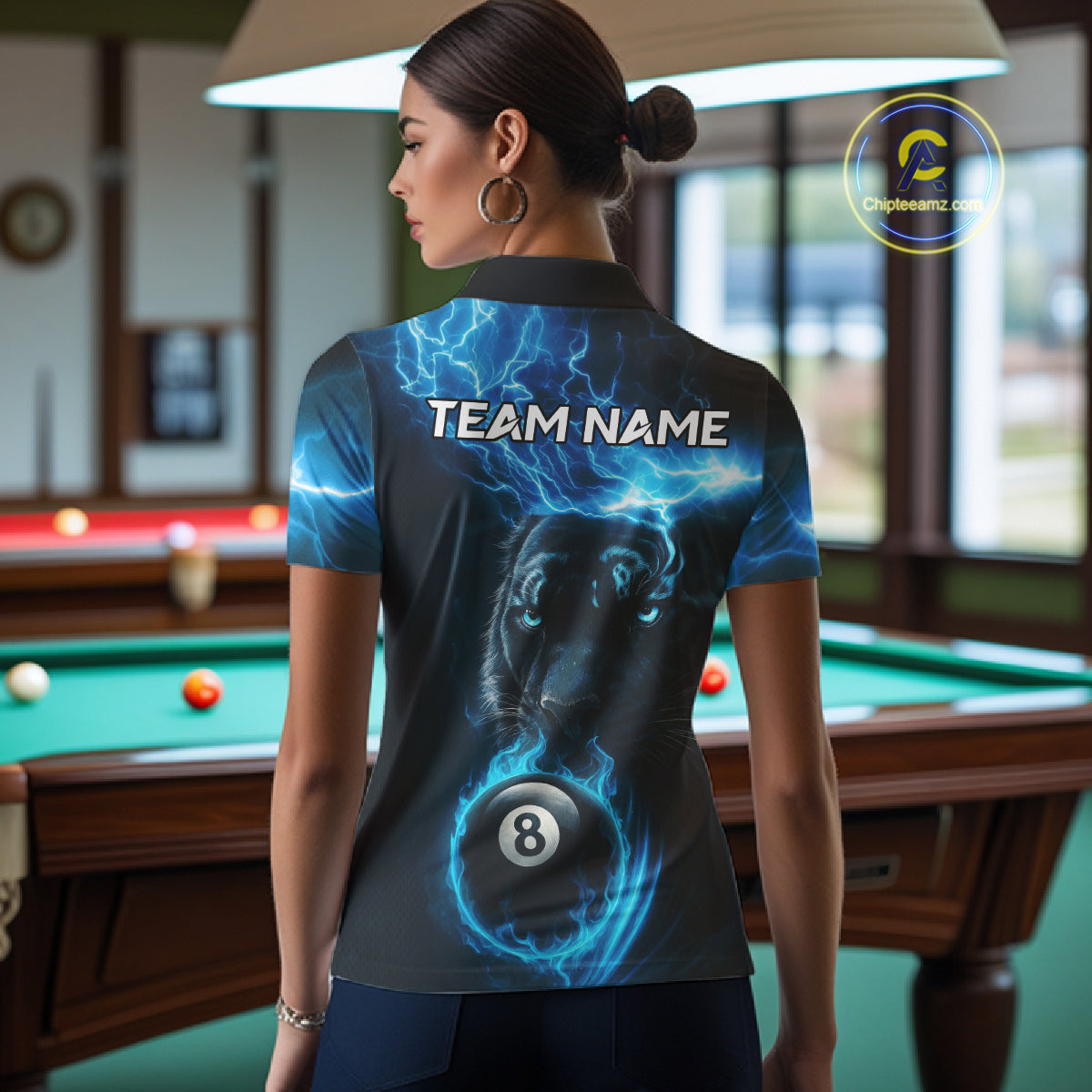Custom Panther Billiard Polo & 1/4 Zip For Men, Blue Flame 8 Ball Lightning Pool Team Jersey TDM4580