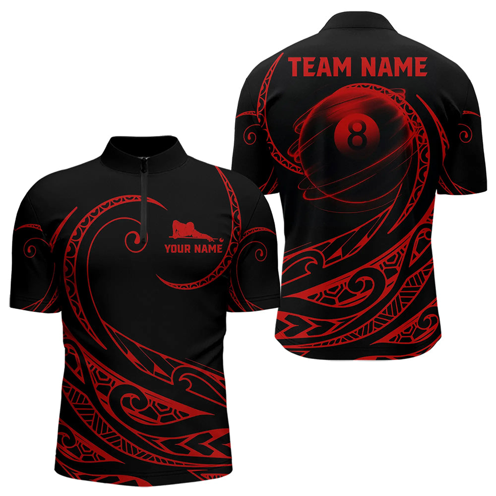 Black And Red 8 Ball Pool Tribal Pattern Men Billiard Polo & 1/4 Zip Custom Billiard Pool Jerseys TDM3472
