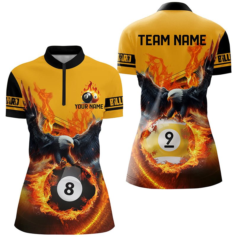 3D Eagle Flying Custom Fire 8 Ball & 9 Ball Billiard Shirts For Women, Best Team Billiard Jerseys TDM2236