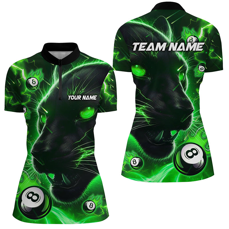 Personalized Green 8 Ball Pool Panther 3D Billiard Shirts For Women, Team League Billiard Jerseys TDM2245
