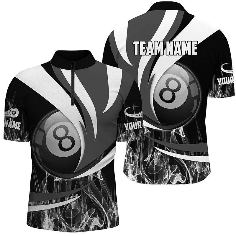 Personalized Black Grey 8 Ball Pool Fire Smoke Billiard Shirts For Men, 8 Ball Billiard Team Jersey TDM2302