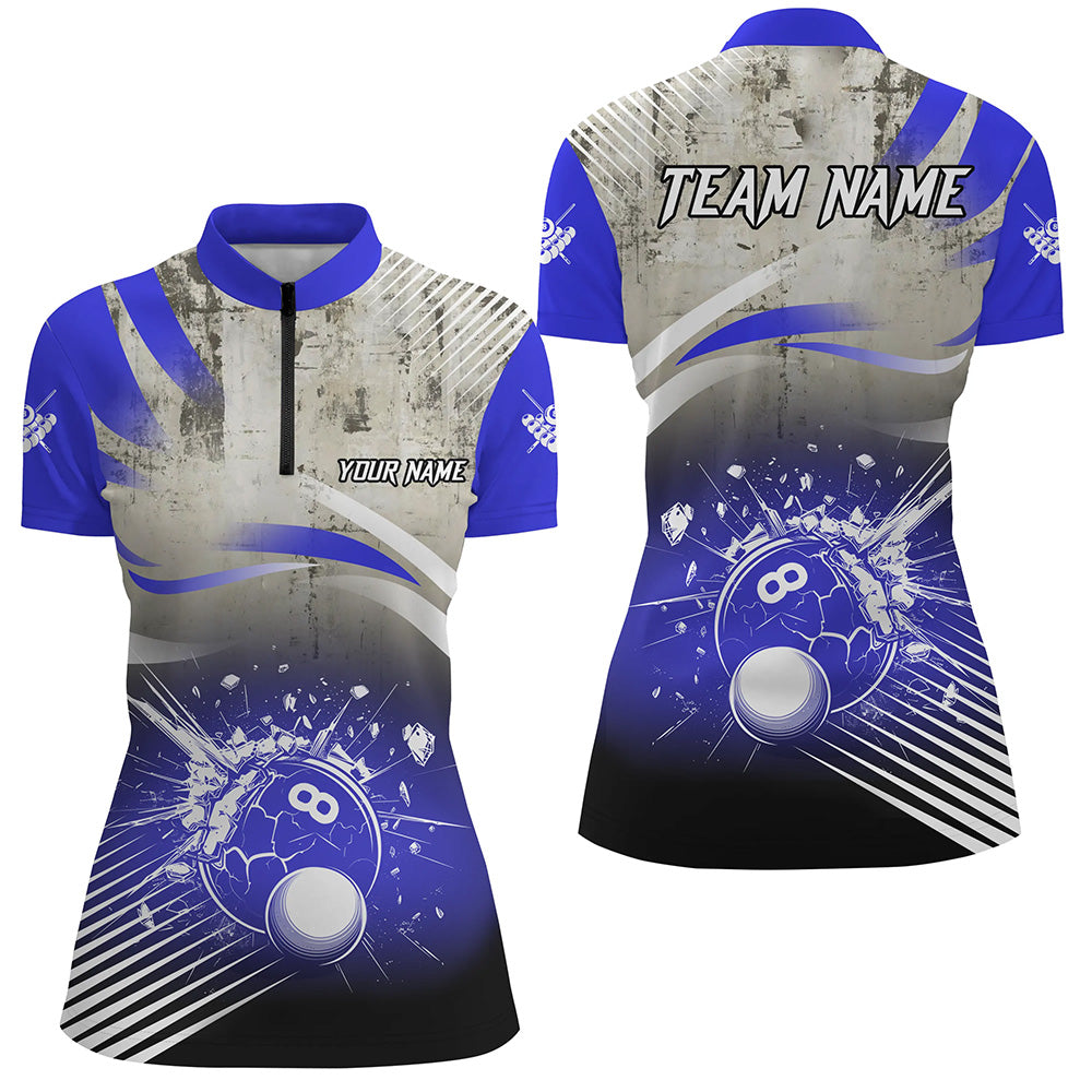 Personalized Blue Grunge Break 8 Ball Billiard Shirts For Women, Retro Team League Billiard Jerseys TDM2344