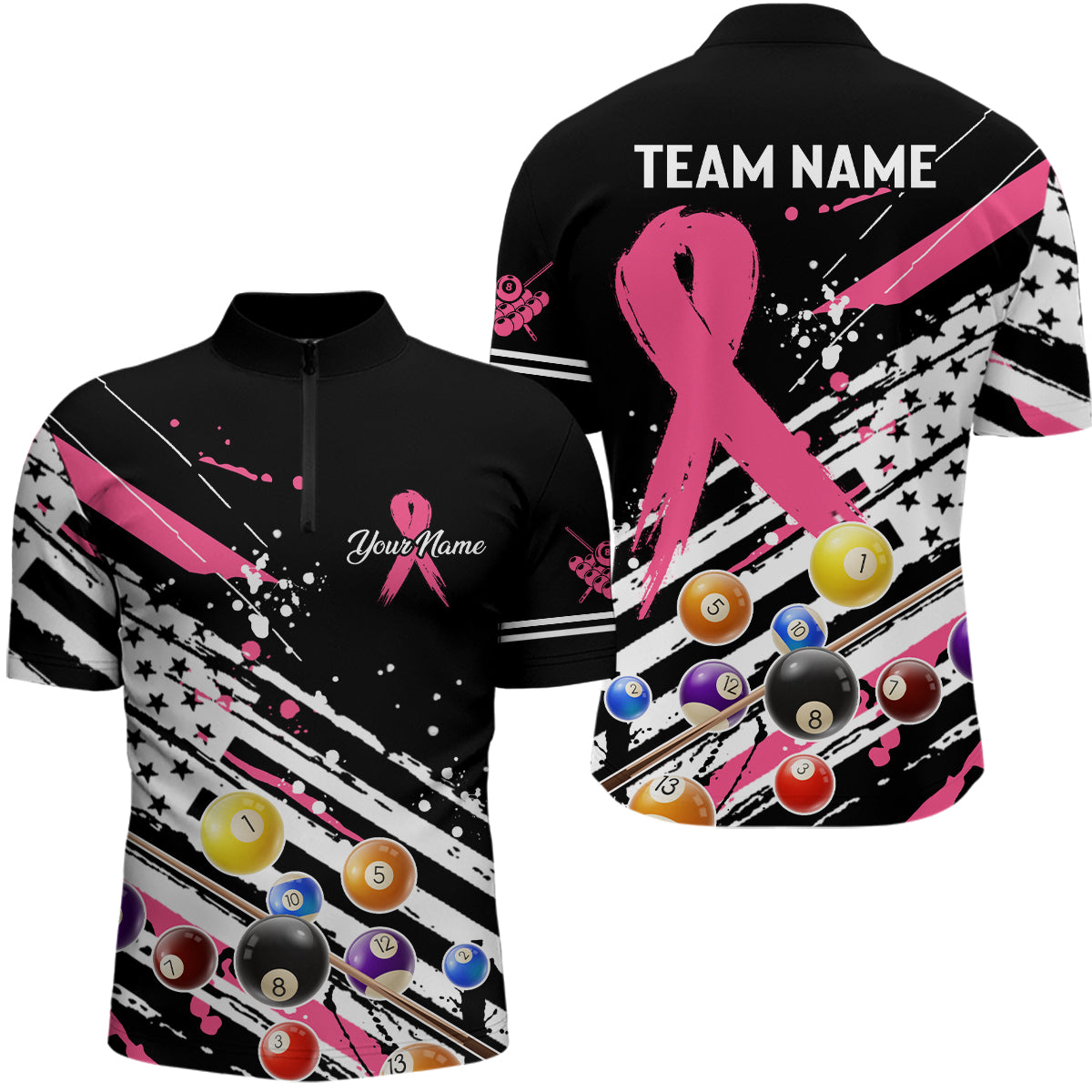 Breast Cancer American Flag Custom Billiard Shirts For Men, Billiard Balls Jerseys, Gift For Pooler TDM2356