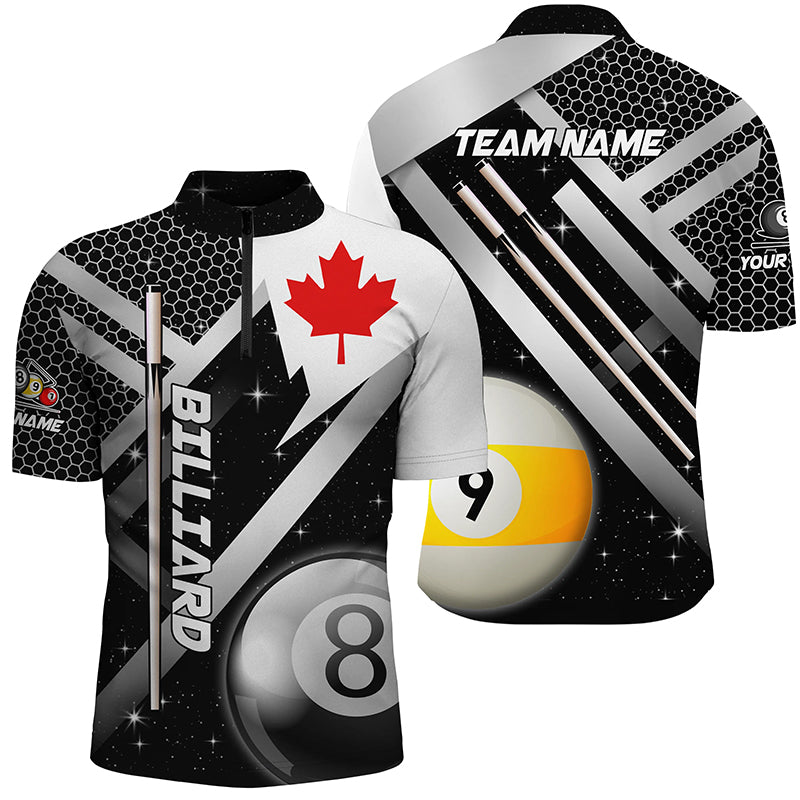 Canada Leaf Black Jerseys Custom Billiard 8 & 9 Ball Pool Shirts For Men Patriotic Billiard Jerseys TDM2362