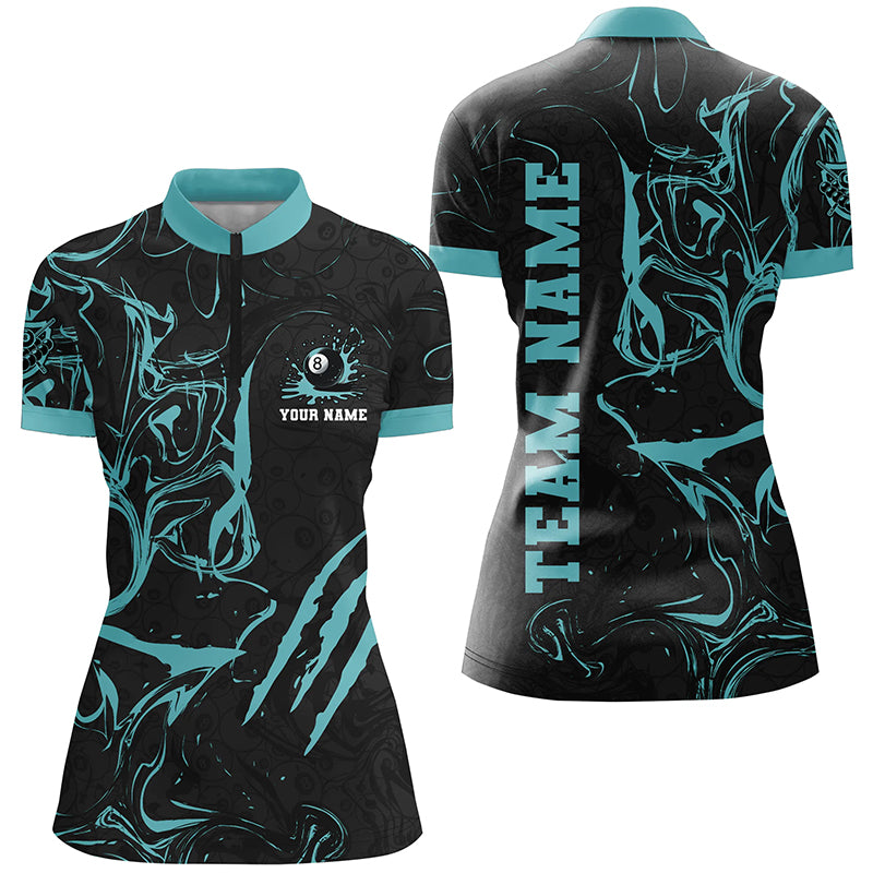Personalized Black And Turquoise Grunge Billiard Polo, 1/4 Zip Shirts For Women, Billiard Jerseys TDM2400
