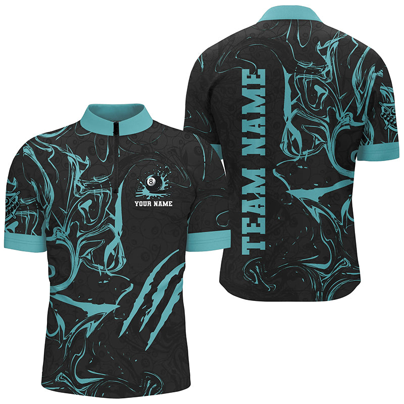 Personalized Black And Turquoise Grunge Billiard Polo, 1/4 Zip Shirts For Men, Billiard Jerseys TDM2400
