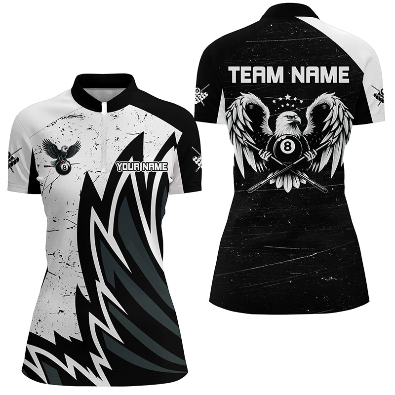 Personalized Grunge Black White Eagle Wings Billiard Shirts For Women, Billiard Jersey Short Sleeves TDM2446