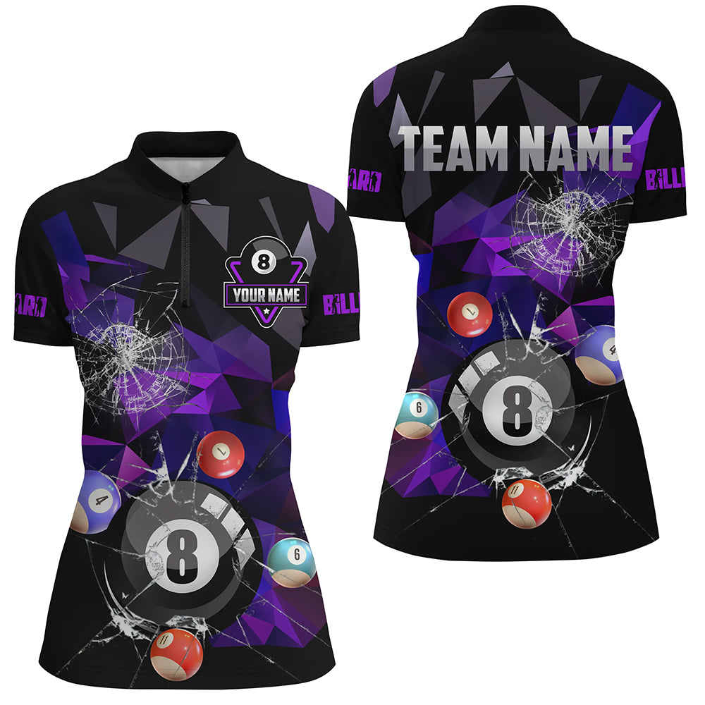 Personalized Billiard Balls Break Glass Pool Jersey For Women, Abstract Billiard Team Shirts | Blue TDM2489