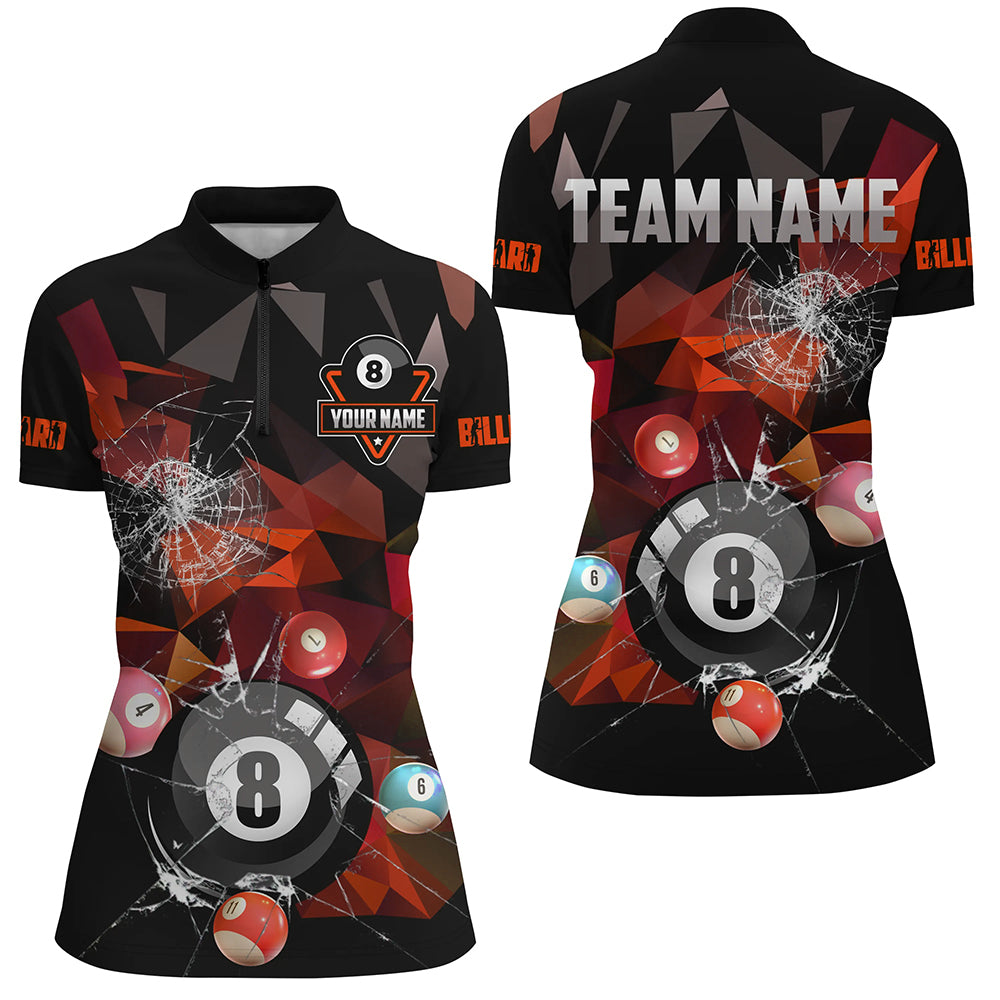 Personalized Billiard Balls Break Glass Pool Jersey For Women, Abstract Billiard Team Shirts | Red TDM2491