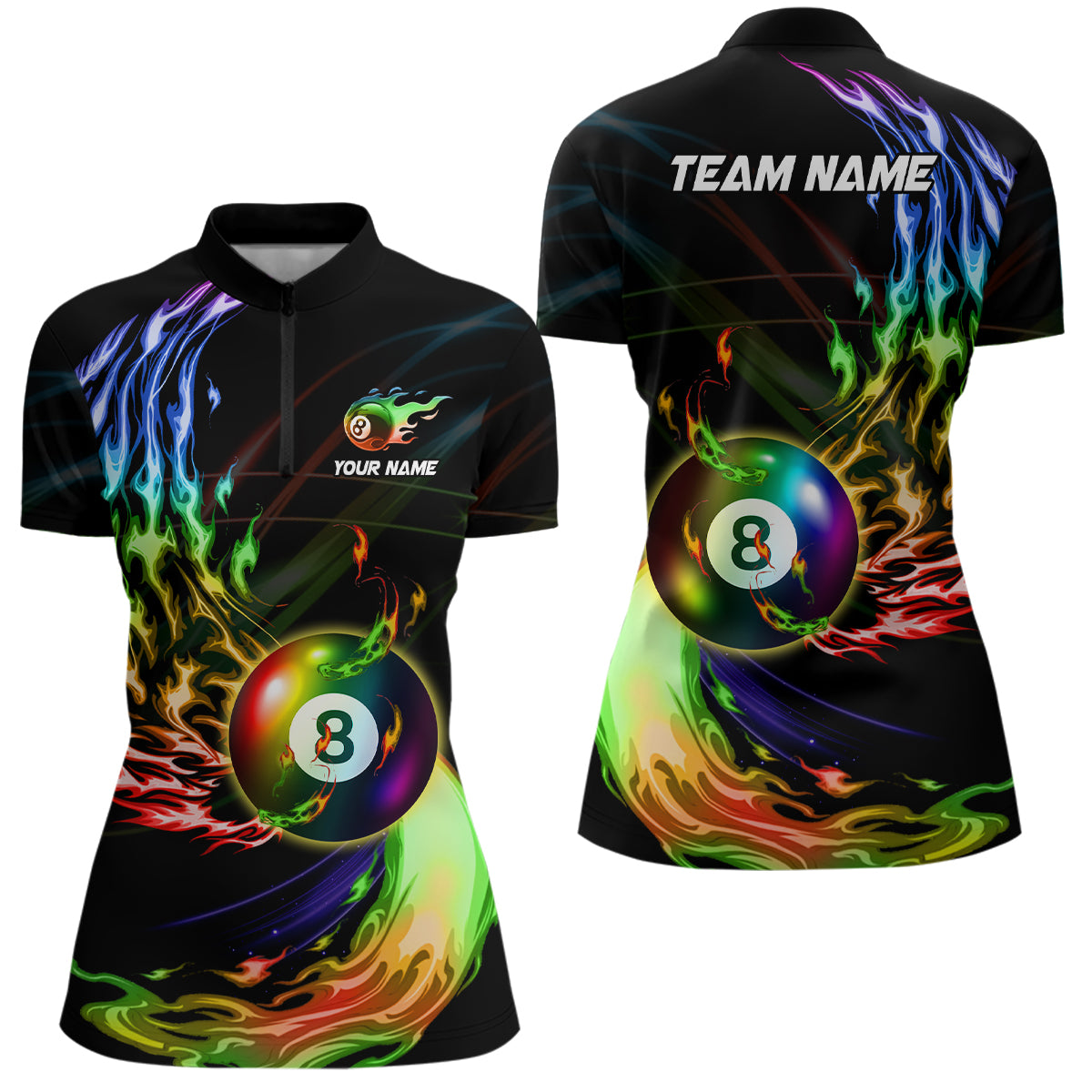 Personalized 8 Ball Pool Rainbow Fire Flame Billiard Shirts For Women, Colorful Billiard Jerseys TDM3240