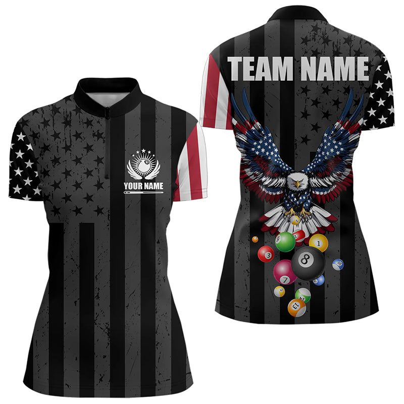 Personalized Eagle American Flag Billiard Balls Pool Shirt For Women, Patriotic Billiard Shirt Jersey TDM3252