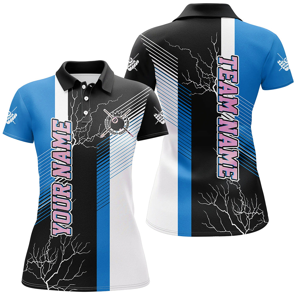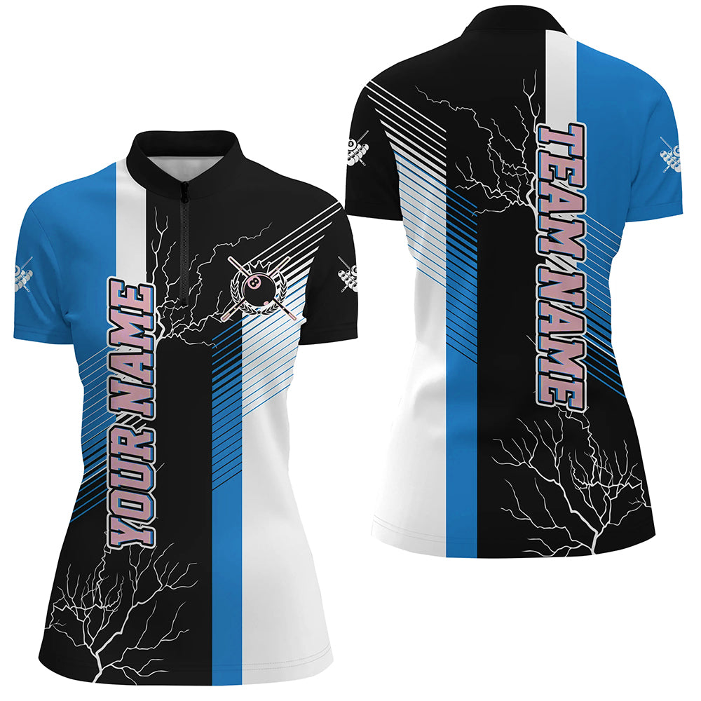 Personalized Black Blue Billiard Polo & Quarter Zip For Women Custom 8 Ball Pool Billiard Team Jersey TDM3270
