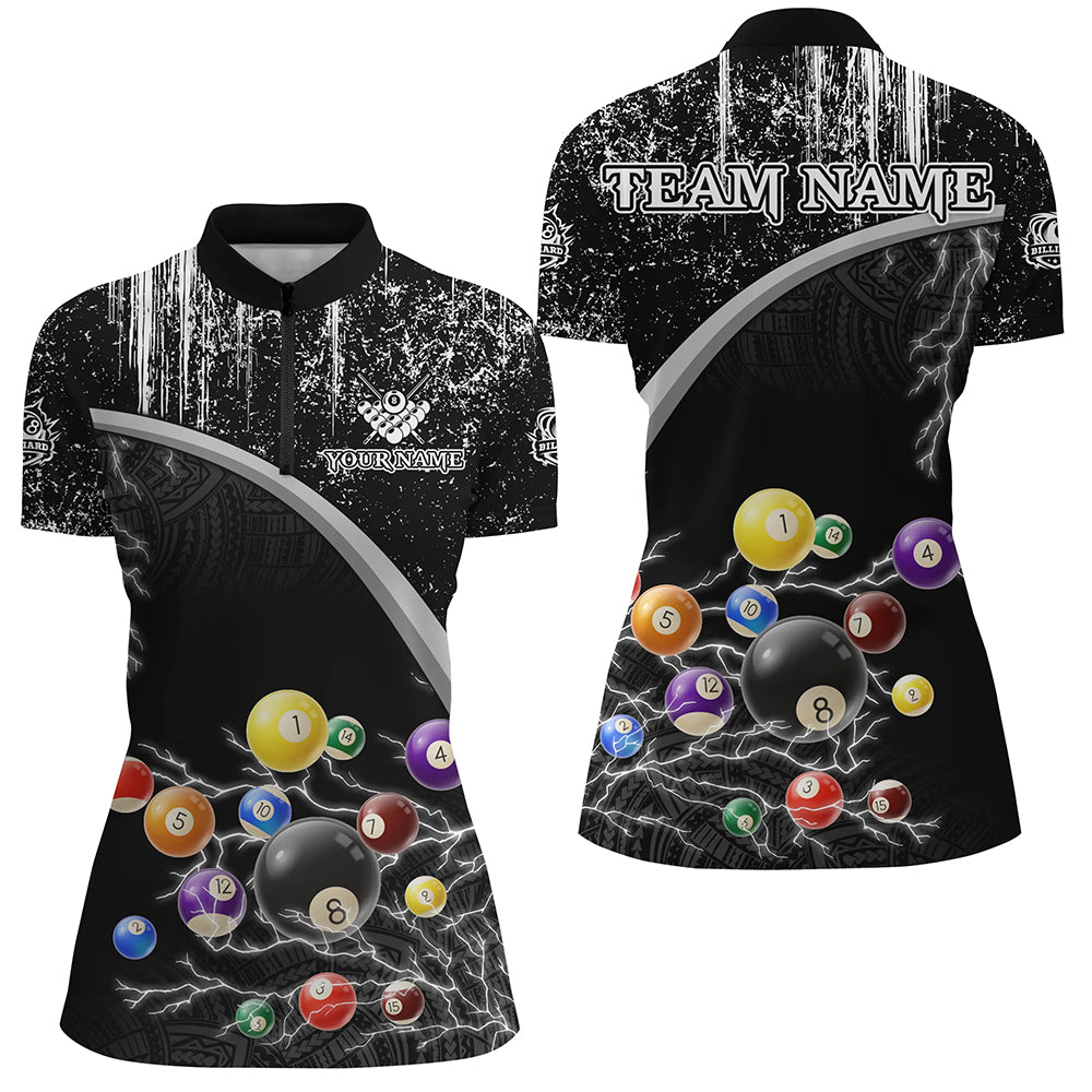 Personalized Black White Grunge Lightning Billiard Shirts For Women, 3D Pool Ball Billiard Jerseys TDM3278