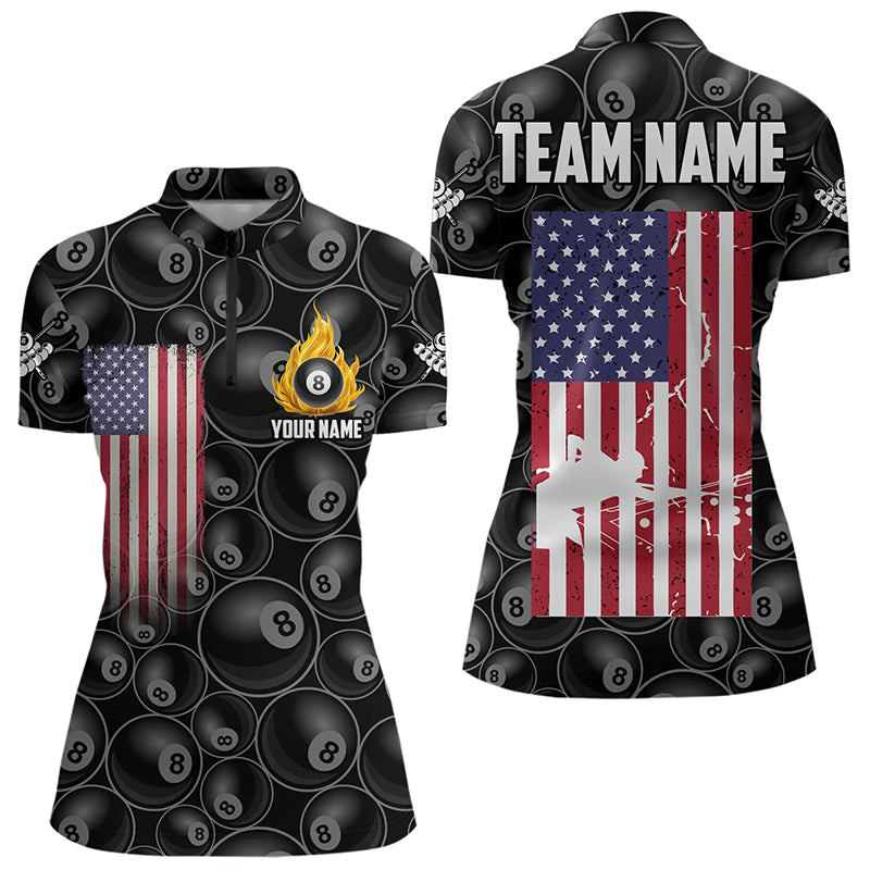 Personalized American Flag 8 Ball Pool Pattern Women Billiard Shirt, Patriotic Pool Billiard Jerseys TDM3282