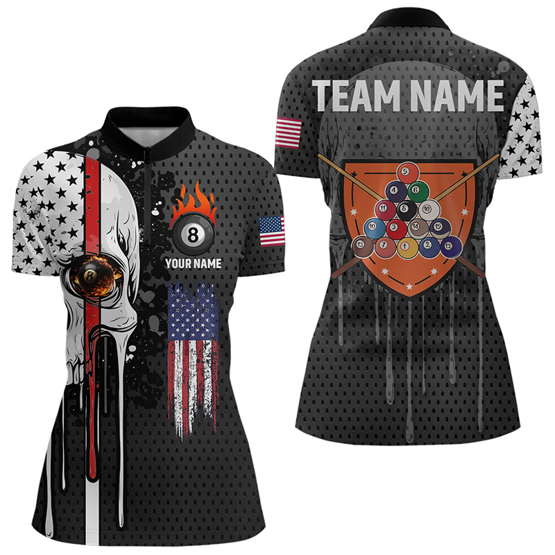 Personalized Grunge Skull Melting American Flag Billiard Shirt For Women Patriotic US Billiard Jersey TDM3292