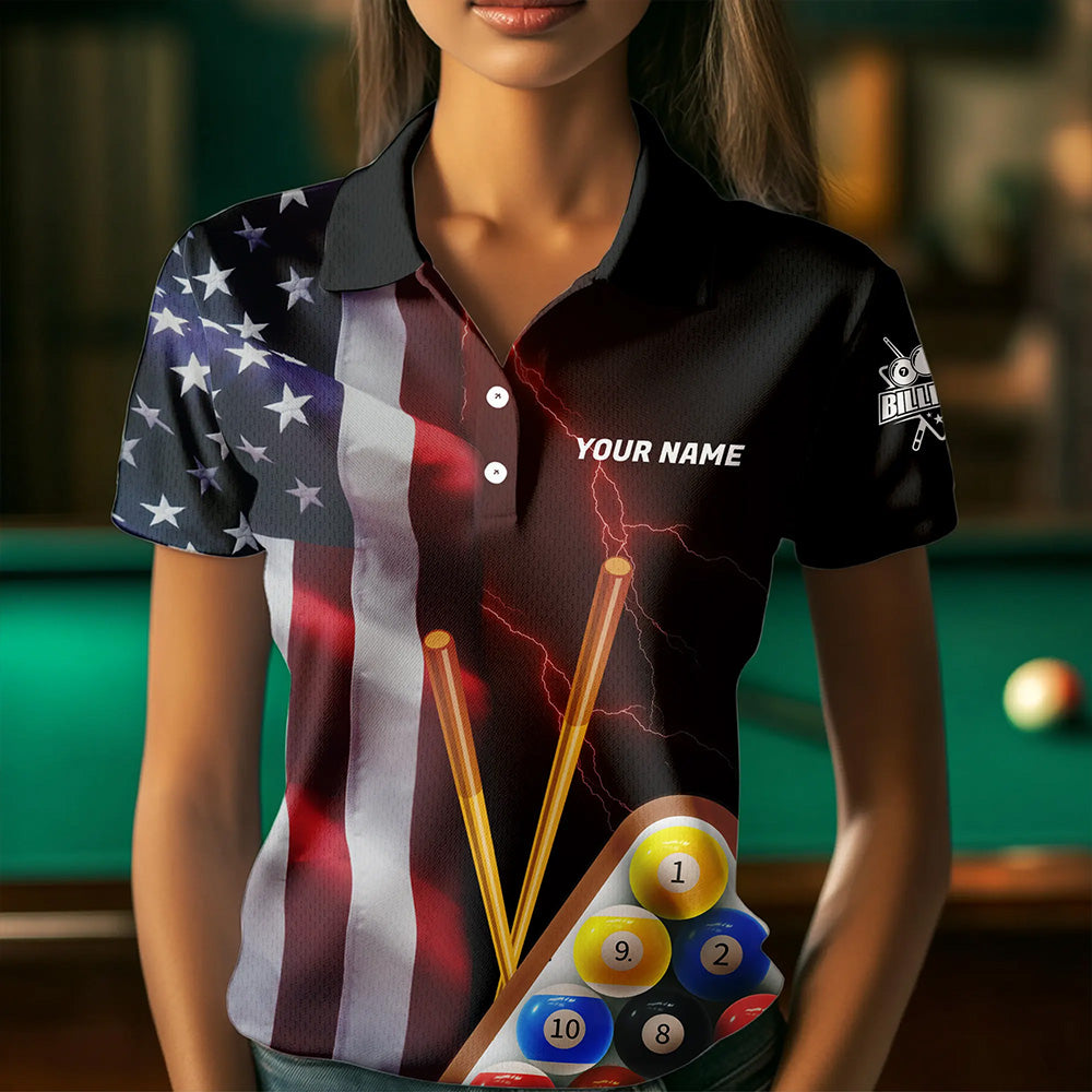 Personalized American Flag 8 Ball Pool Smoke Women Billiard Shirt Patriotic Lightning Billiard Jersey TDM3382