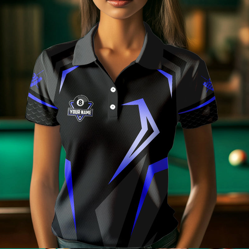 Personalized 8 Ball Pool Billiard Balls Polo & 1/4 Zip For Women Custom Team Billiard Jersey | Blue TDM3535