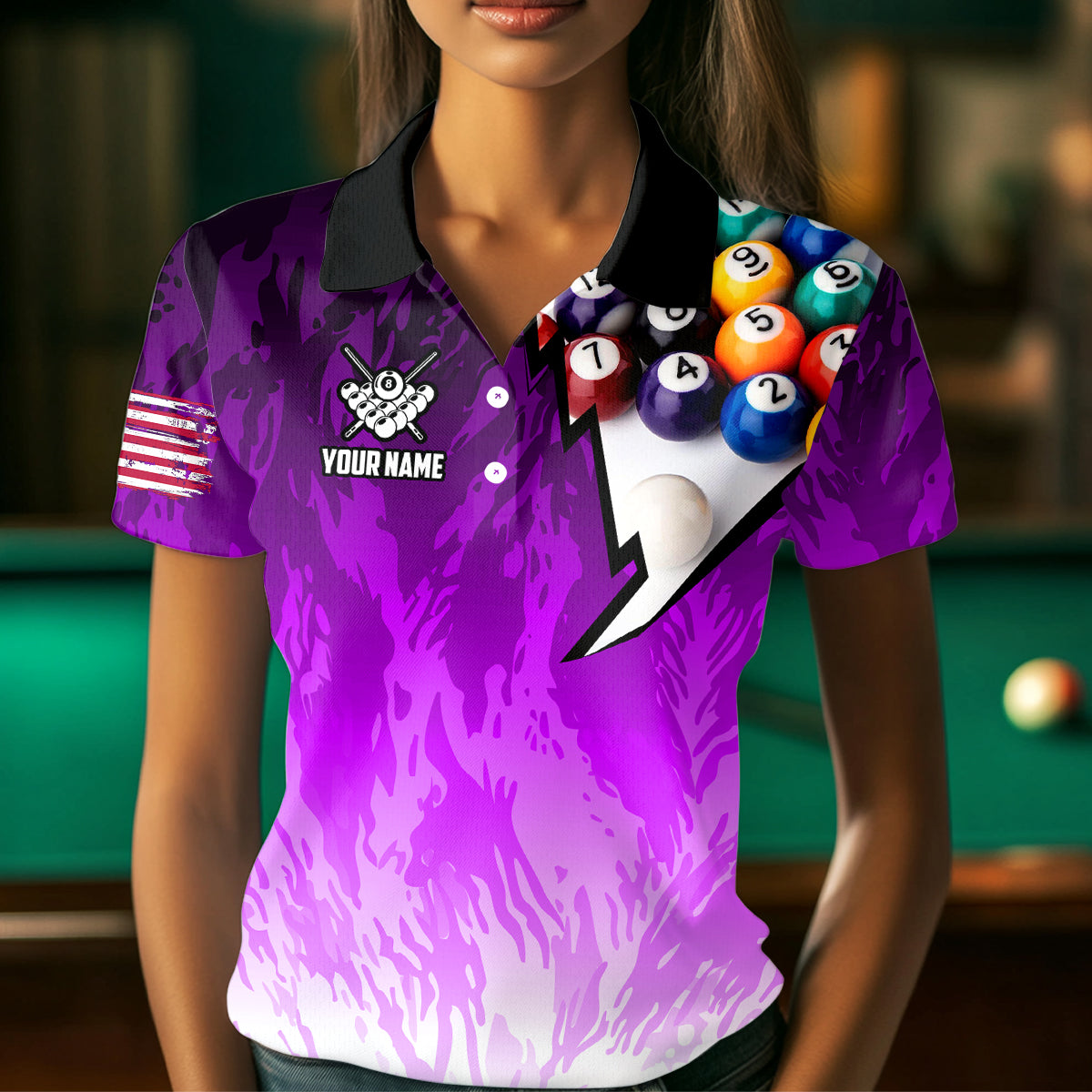 Personalized Purple Pool Player Billiard 8 Ball Polo & 1/4 Zip For Women Custom Billiard Jerseys TDM3658