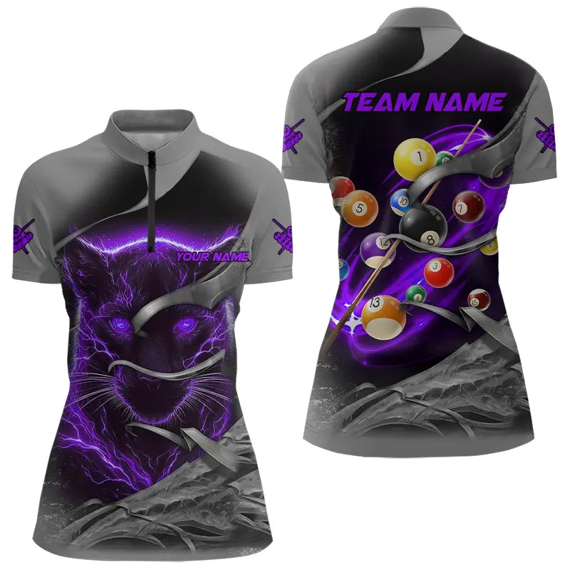 Personalized Panther Lightning 3D Billiard Balls Pool Shirts For Women, Billiard League Jersey|Purple TDM3737
