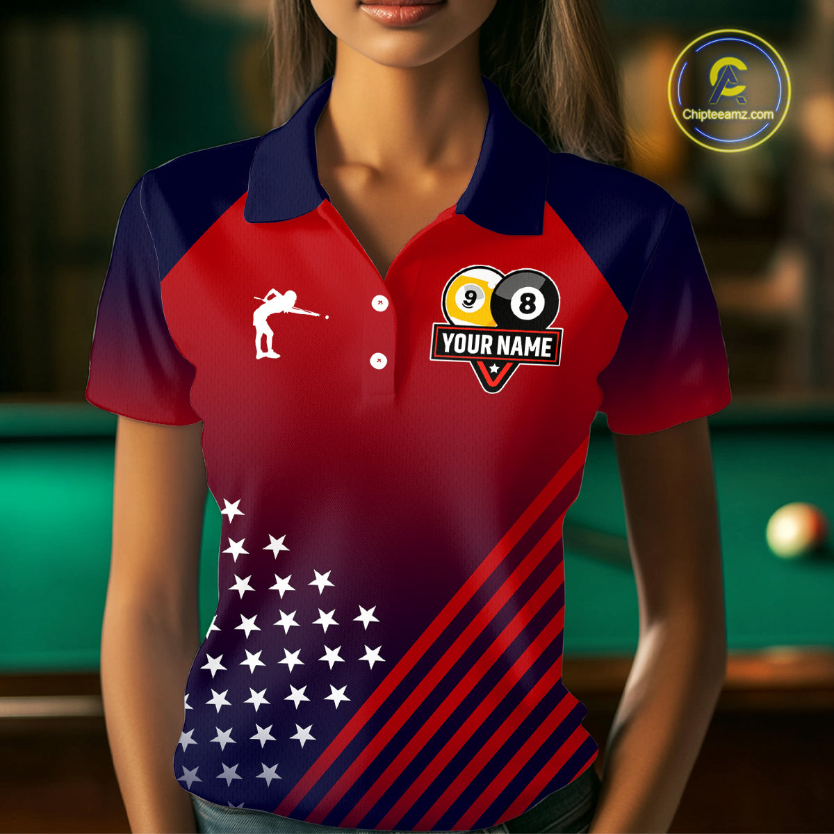 Personalized US Flag Billiard 8 Ball & 9 Ball Pool Polo, 1/4 Zip For Women, Billiard Team Jersey TDM3800