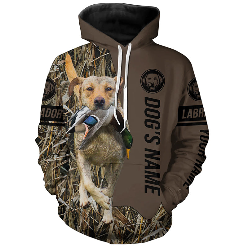 Yellow Labrador Retriever Hunting dog customized Name Shirt, camo and brown color FSD4670