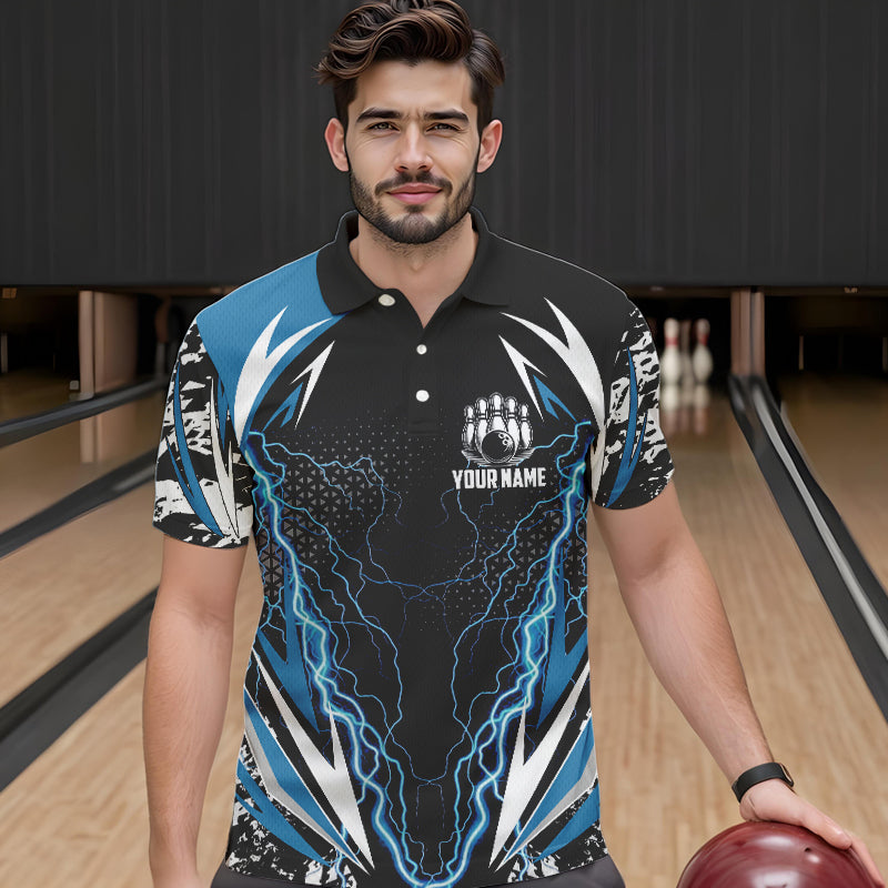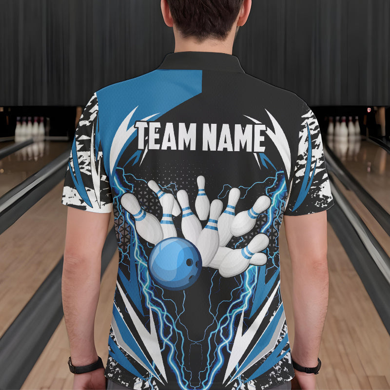 Black and Blue Lighting thunder camo Mens Bowling Polo, Quarter Zip Shirt Custom Team bowling jerseys NQS9321