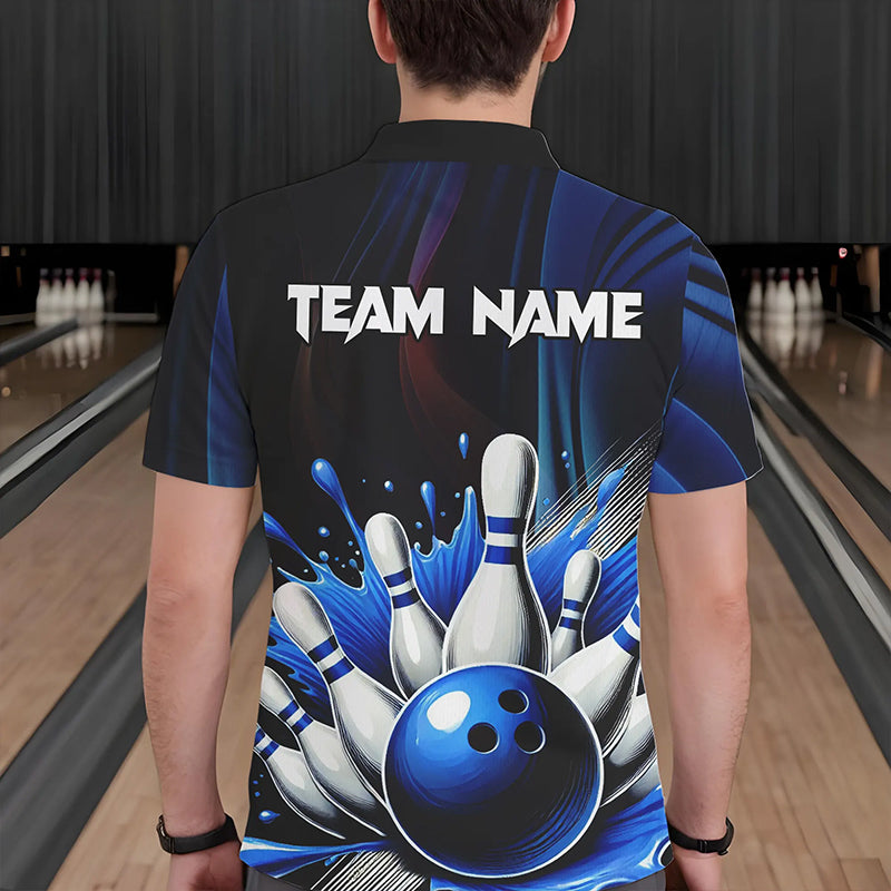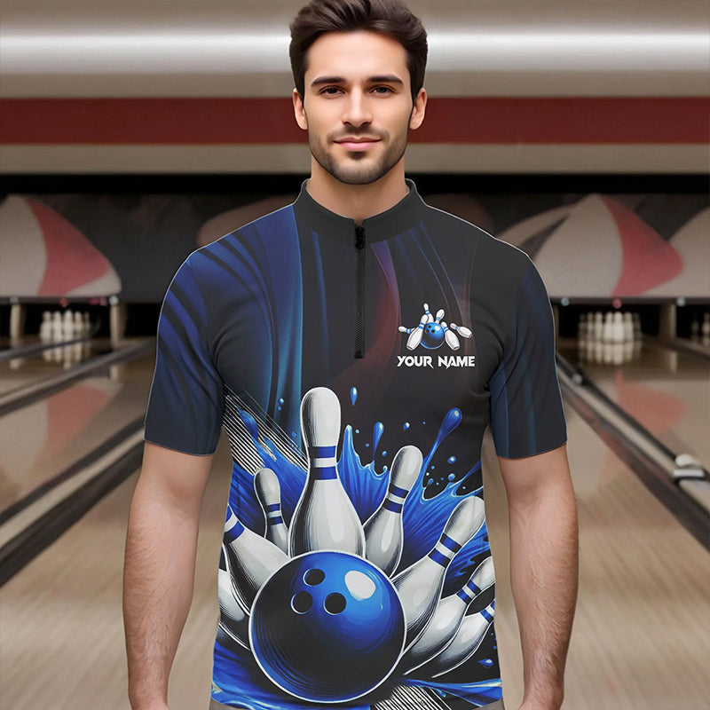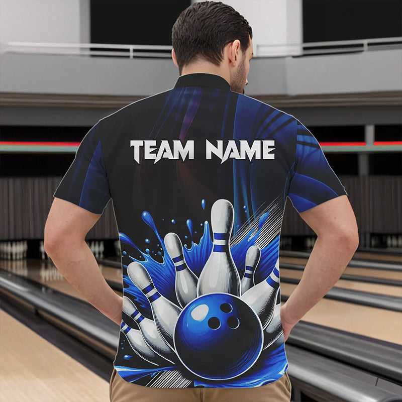 Black and Blue Men's bowling outfits Custom Team Mens bowling Polo, Quarter Zip Shirts NQS9700