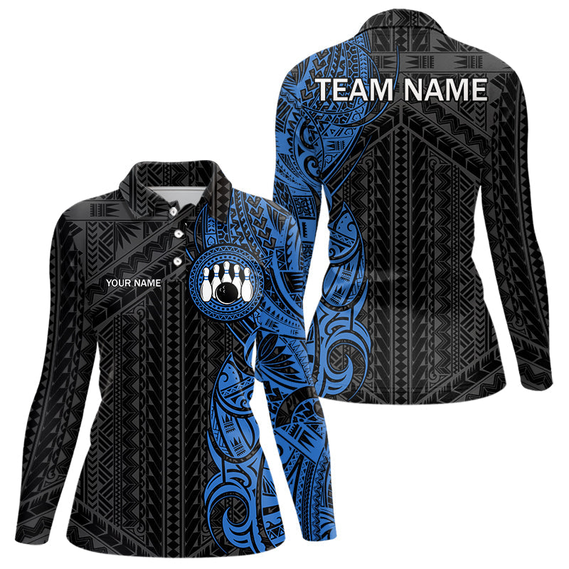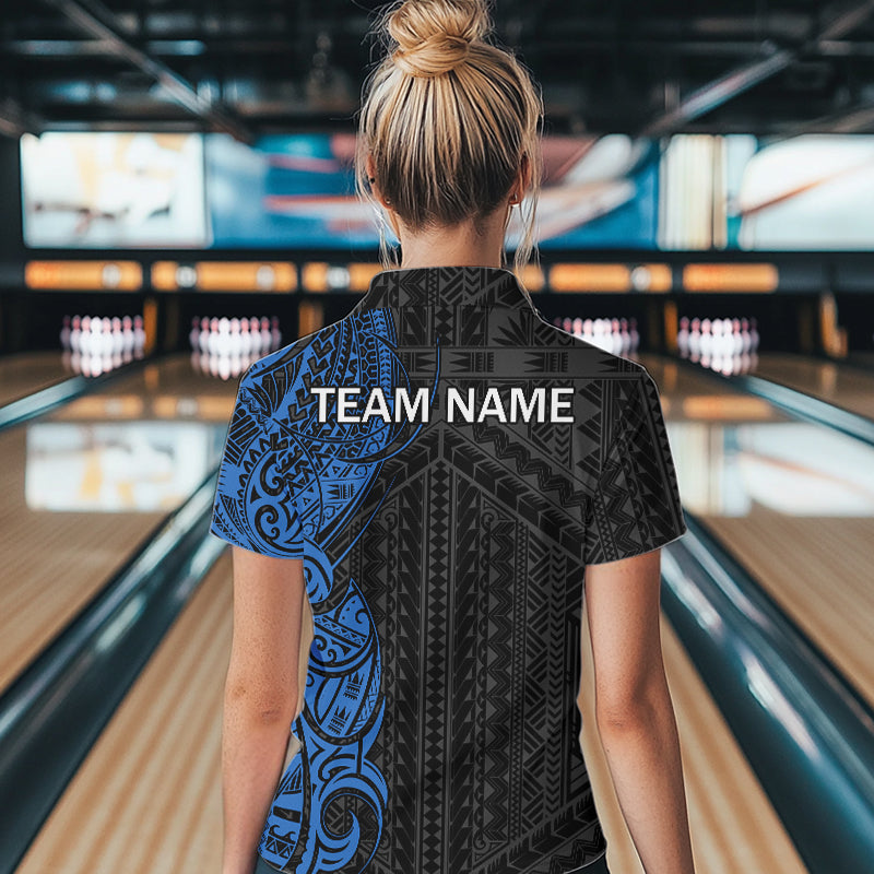 Black and Blue Tribal pattern Womens Bowling Shirts Custom Bowling outfit ladies Team bowling jerseys NQS9713
