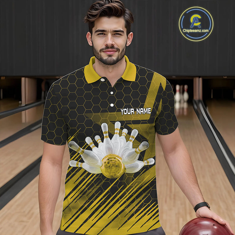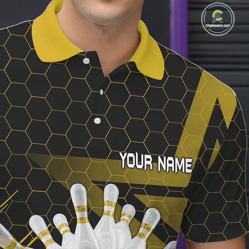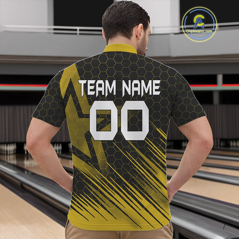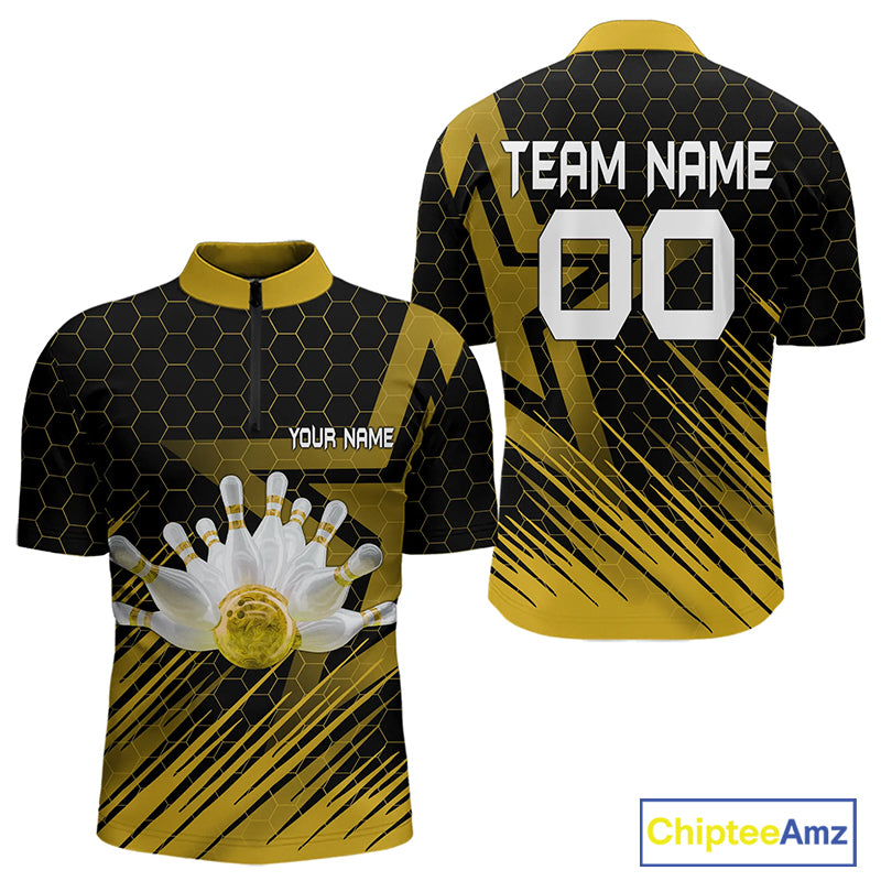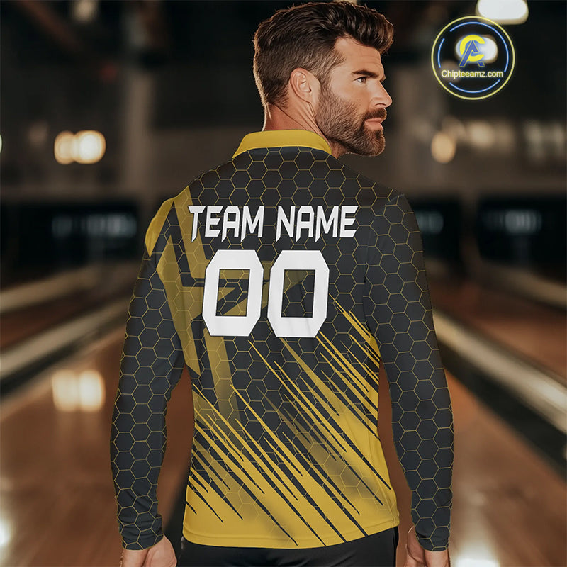 Black And Gold Custom Bowling Polo, Quarter Zip Shirts For Men, Bowling Team League Jersey NQS9810