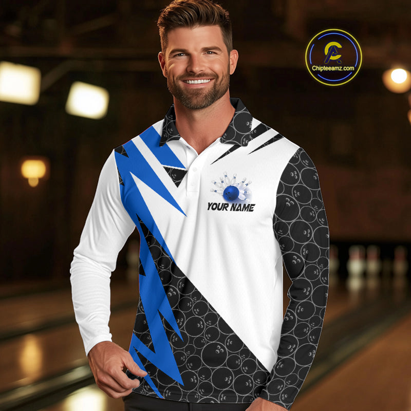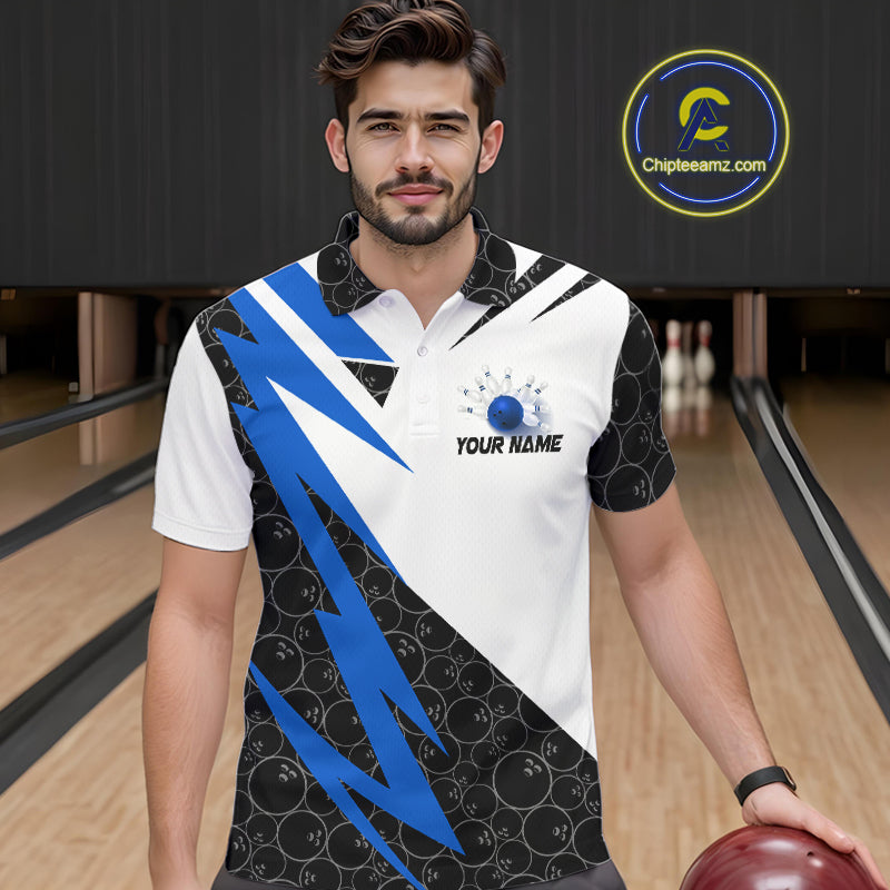 Black and White Bowling Polo, Quarter Zip Shirt for Men Custom Lightning Team bowling jerseys | Blue NQS9837