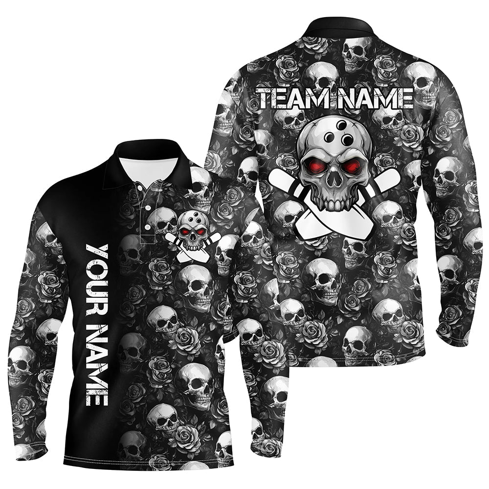 Black Skull and rose pattern Bowling Shirts For Men Custom Skull Bowling Team League Jerseys NQS8580
