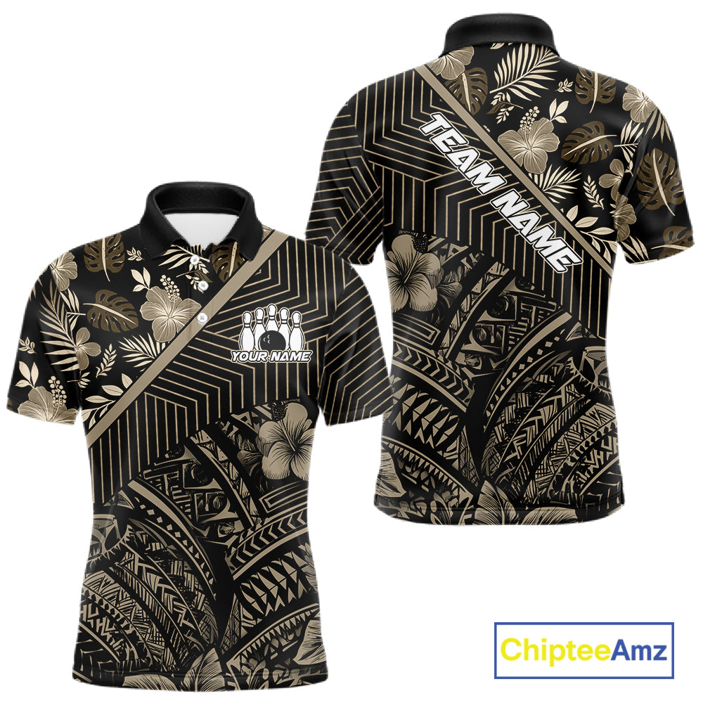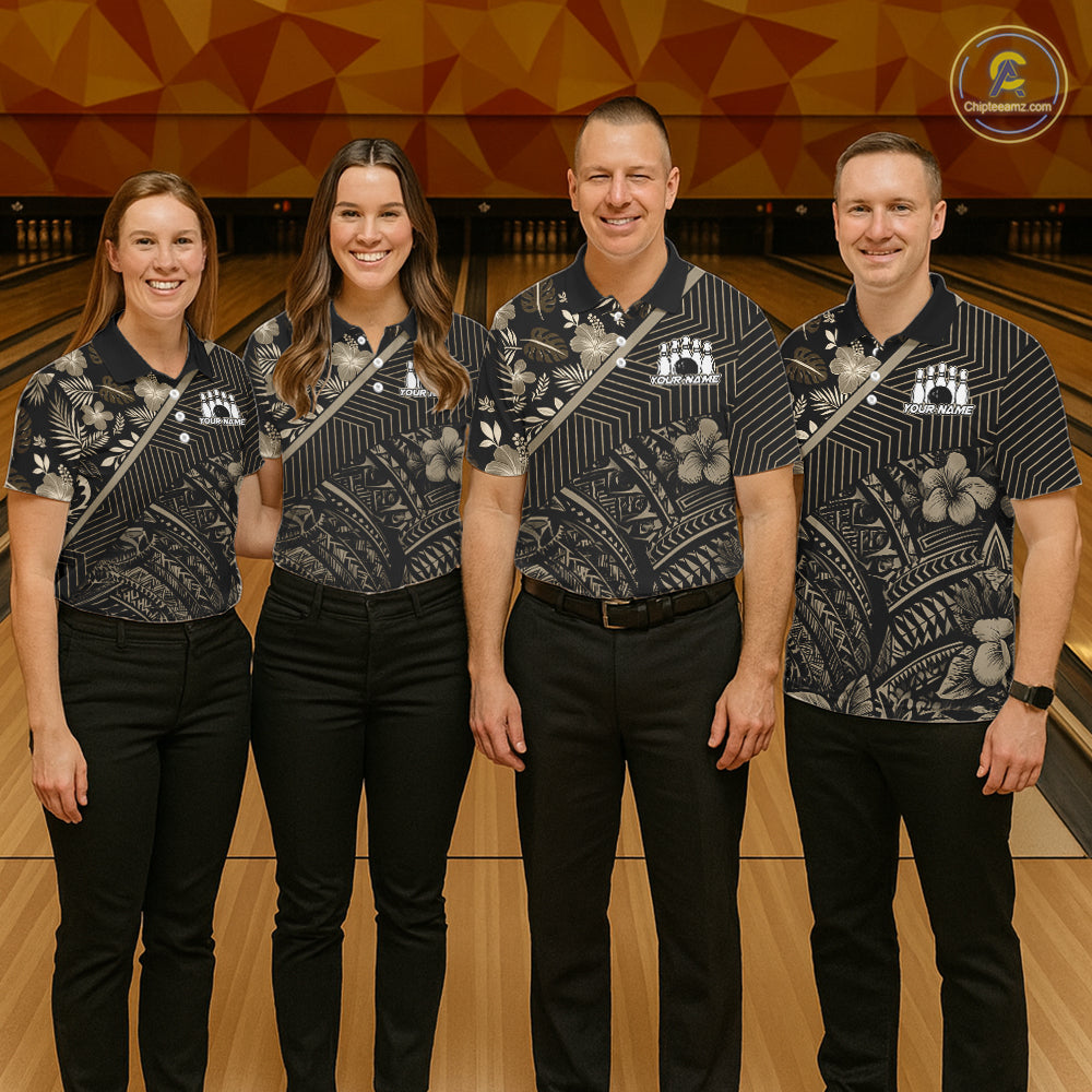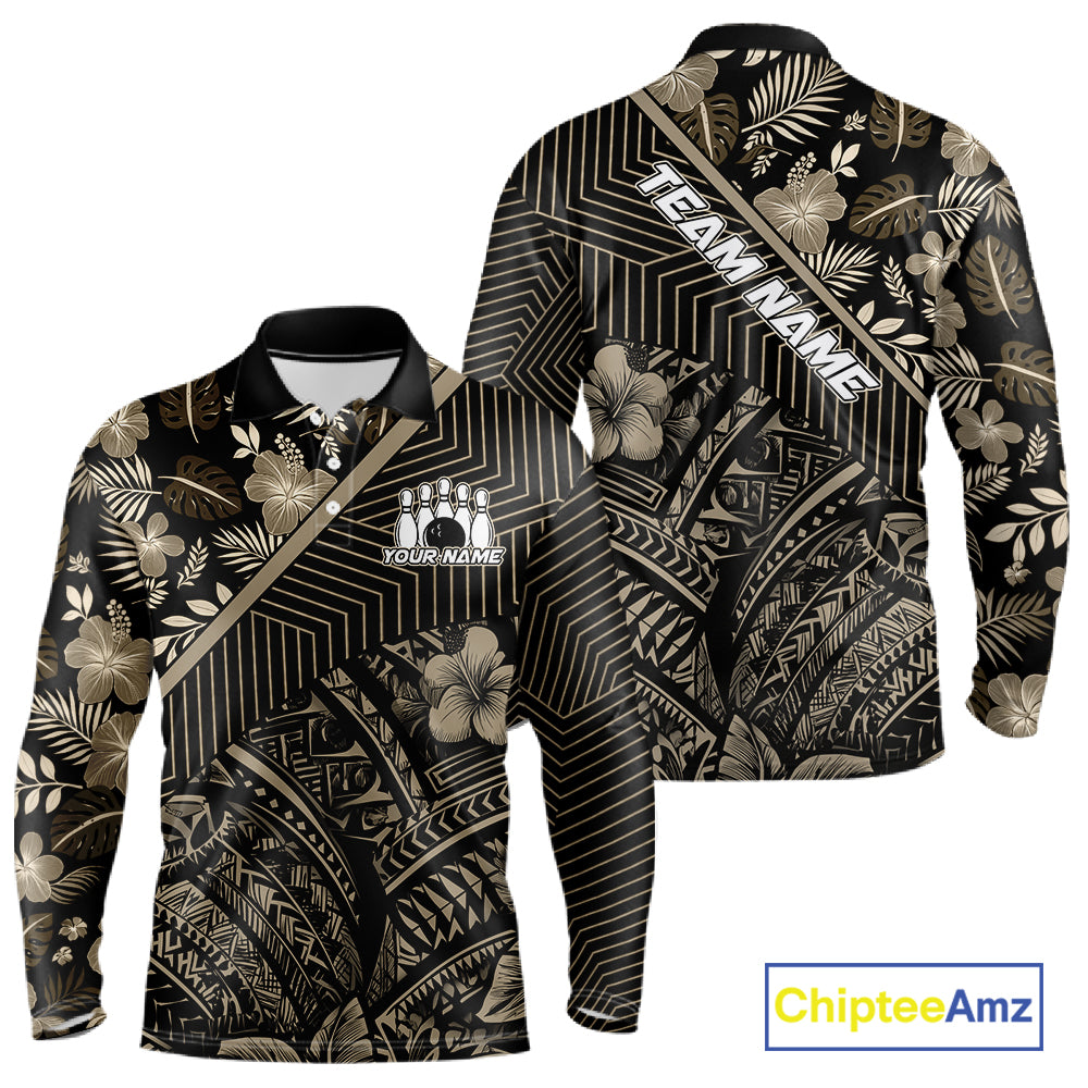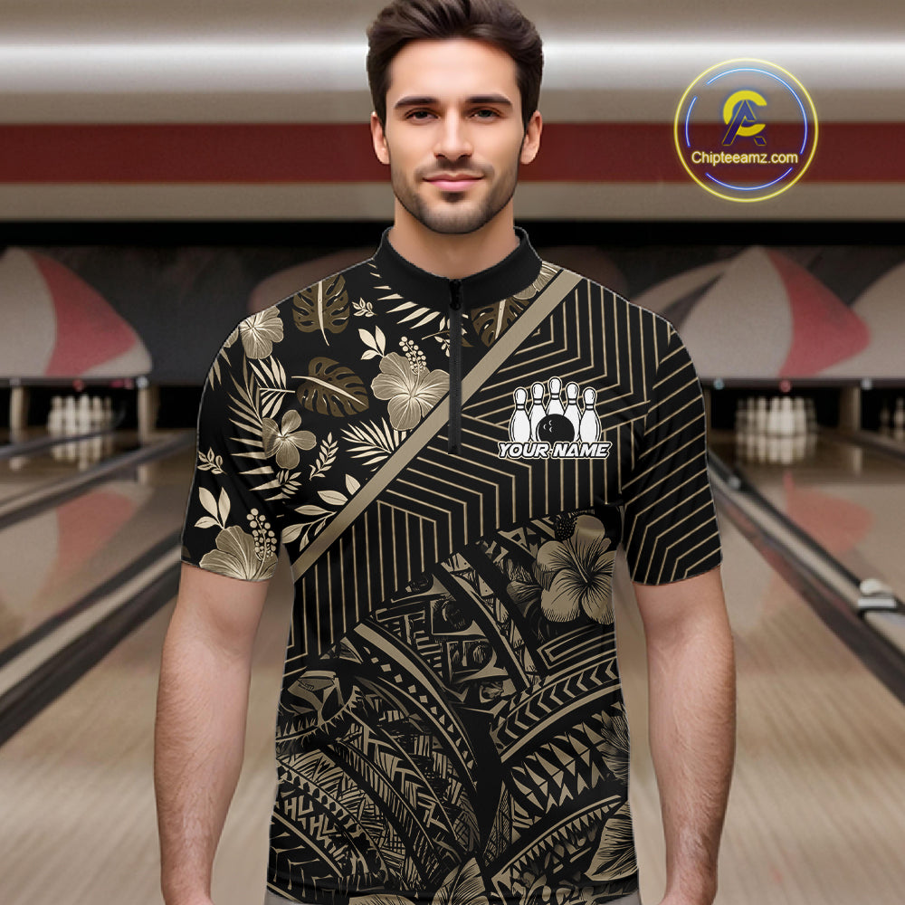 Black tribal pattern Bowling Polo, 1/4 zip Shirts For Men Custom Team Bowling Jerseys NQS11389