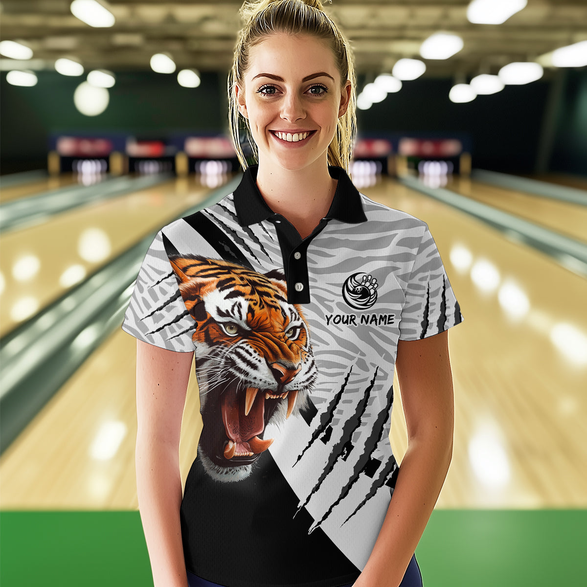 Black & White Bowling Shirt Tiger Bowling Team Jersey Polo Bowling for Men & Women QZT641