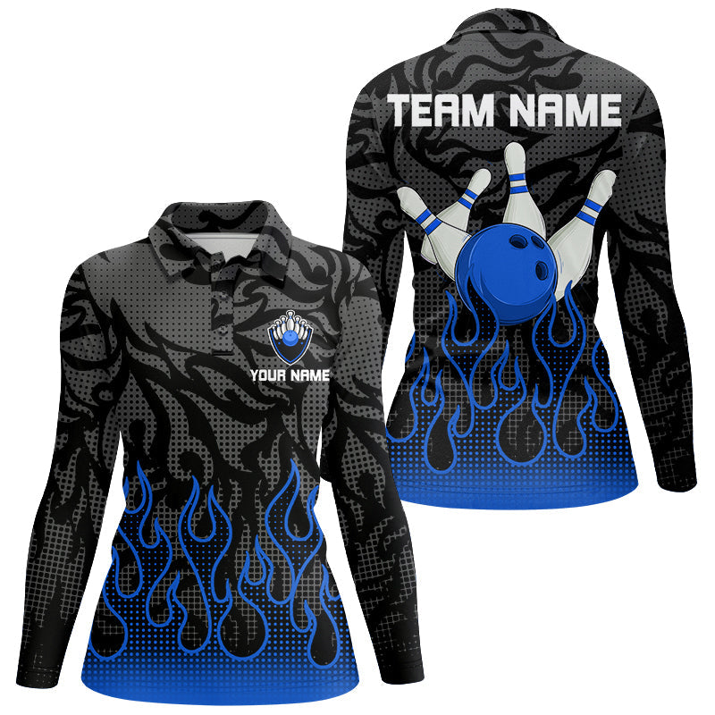 Blue Flame Fire Womens bowling shirts black camo Bowling Jerseys Personalized Bowling Team Shirts NQS9063