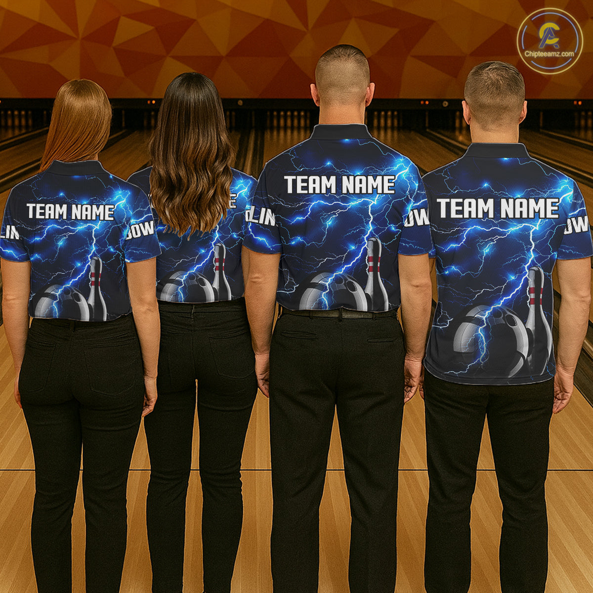 Blue Lightning Thunder Black Women Bowling Polo, Quarter zip Shirt custom storm bowling team jerseys NQS8386
