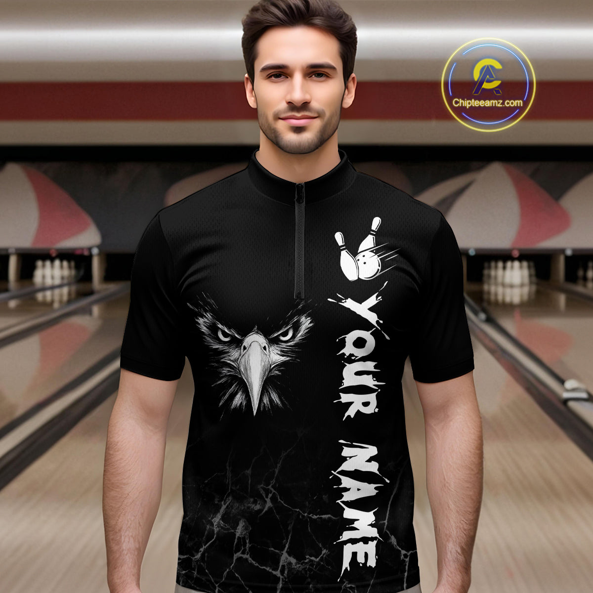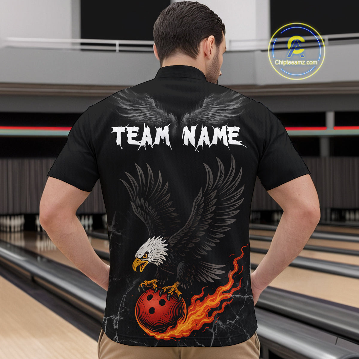 Custom Black Eagle Bowling Men Bowling Shirt Polo & Quarter-Zip Bowling Team Jerseys HNT77