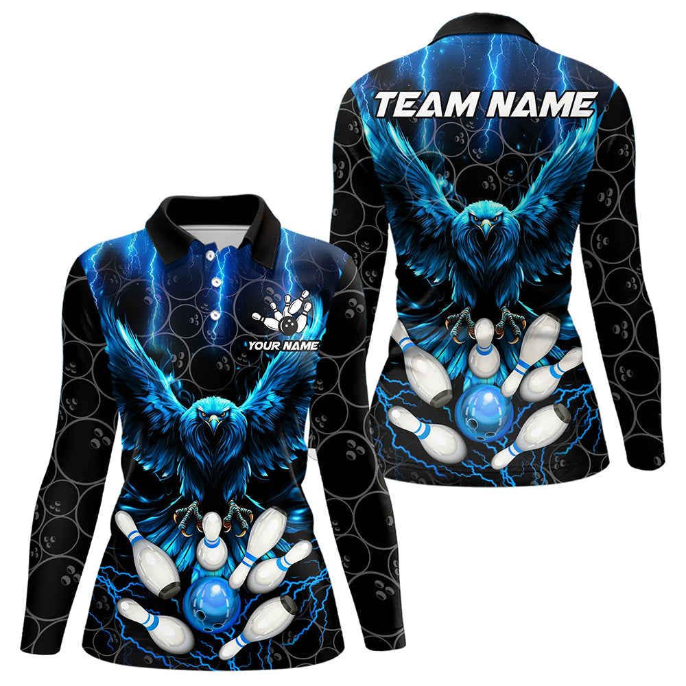 Custom Blue Lightning Thunder Eagle Women Bowling Shirts Black Bowling Camo Team Jersey Outfits NQS9578